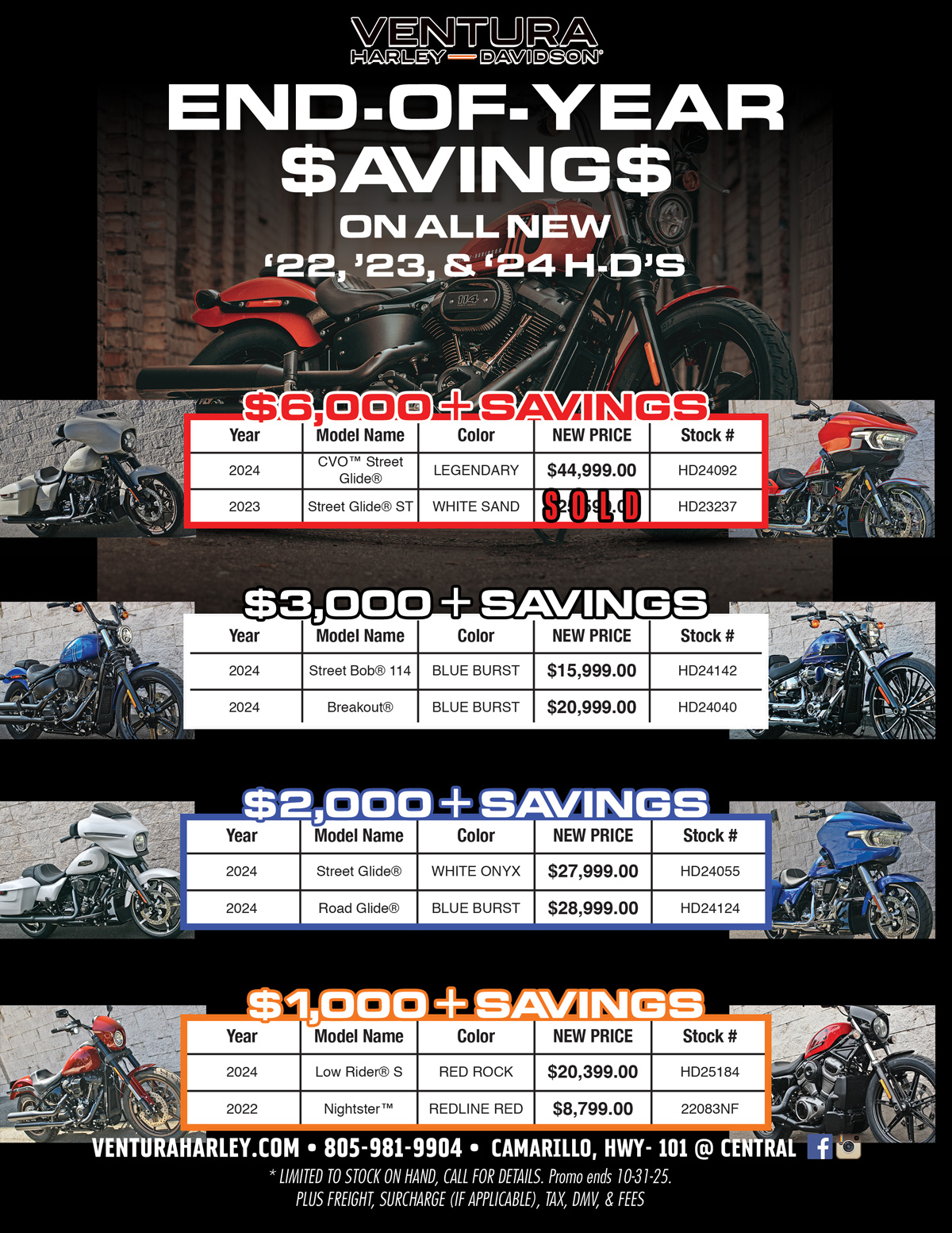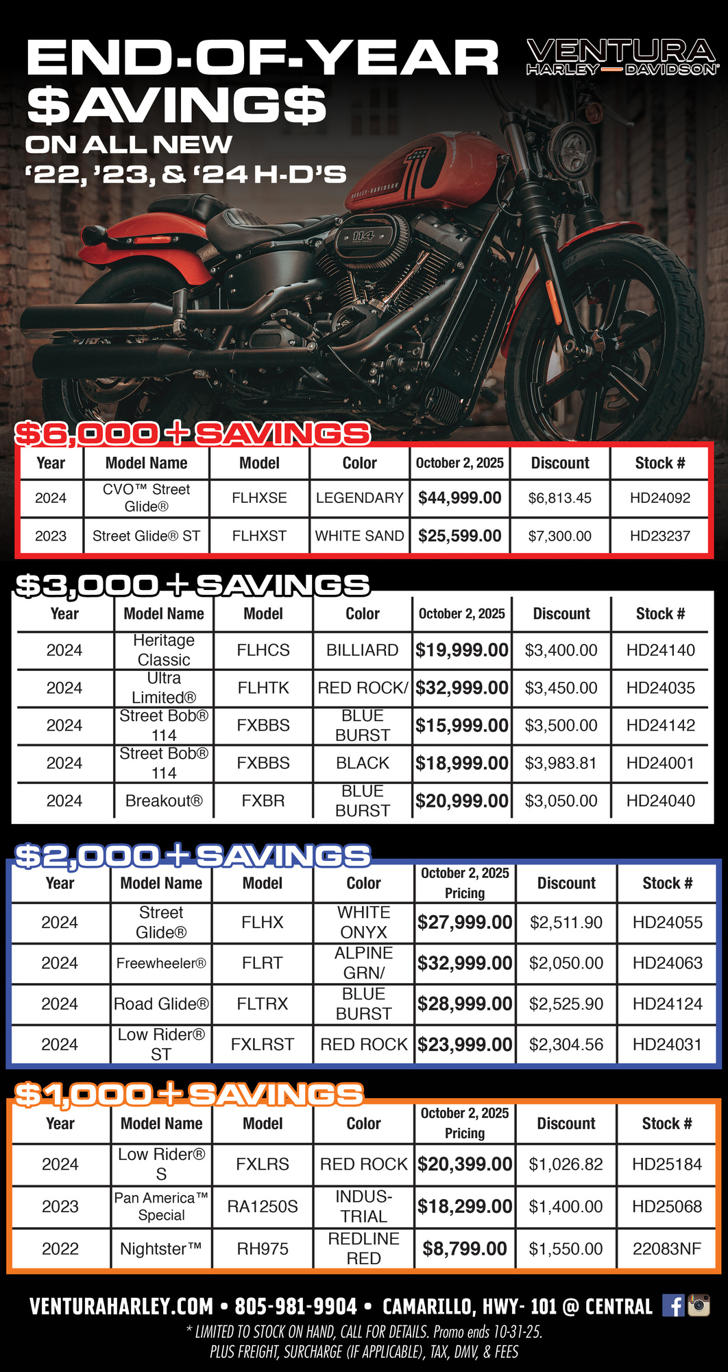 At Ventura Harley-Davidson®, there's nothing we enjoy more than helping our customers find the kind of fun and adventure that a quality Harley-Davidson® motorcycle can bring. If you're considering financing your new Softail®, Sportster®, Street™, or Touring bike, you're in good hands with our finance department. We are thrilled to have the opportunity to help you set up a financing plan that gets you out on our beautiful Southern California roads as soon as possible.